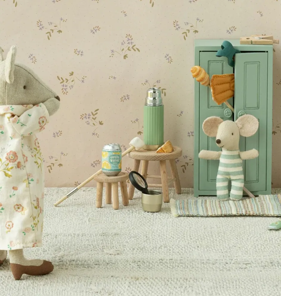 Ein Holzschrank von Maileg. Speziell für die Mäusefamilie entworfen (inklusive 3 goldenen Kleiderbügeln).
