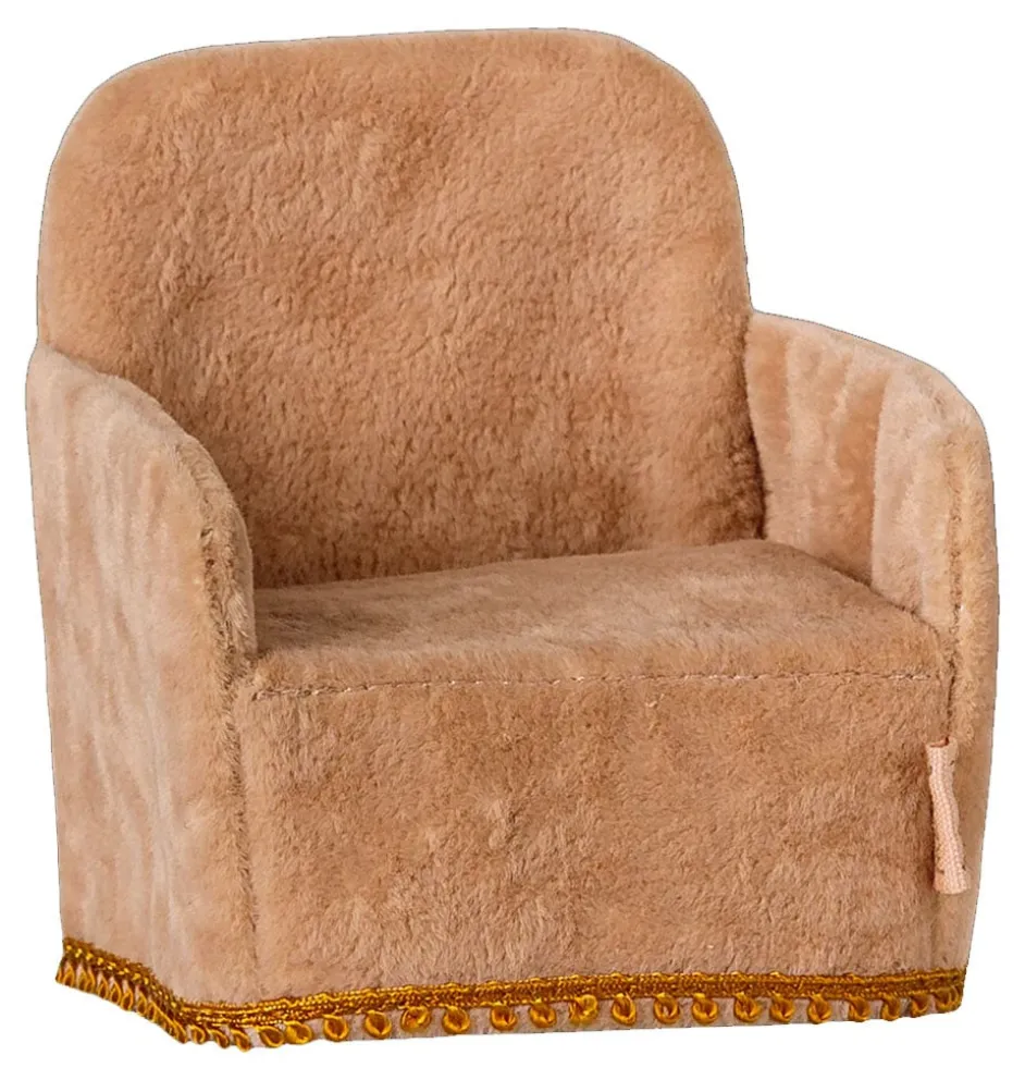 Dieser schöne Entspannungsstuhl ist maßgeschneidert für die Maileg-Mäuse. Perfekt für das Wohnzimmer Ihres Mäusehauses. Der Stuhl wird flach verpackt geliefert und lässt sich leicht zusammenbauen.
