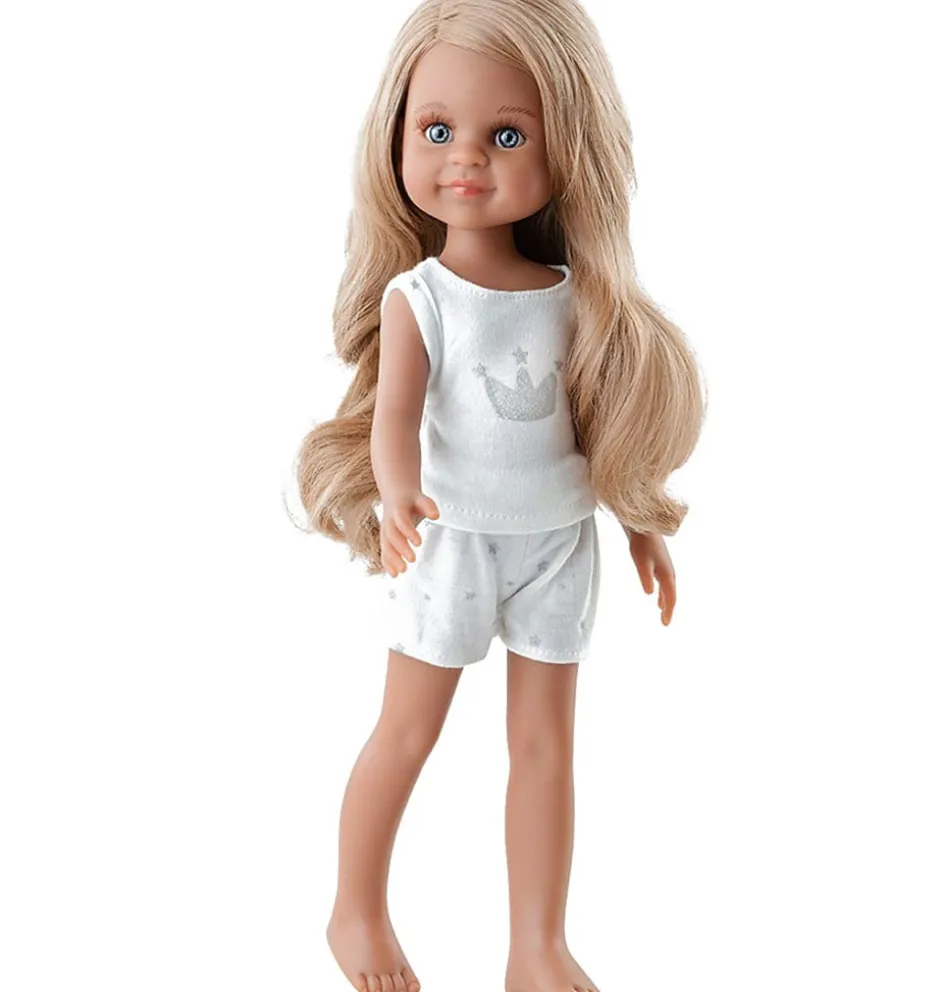 Simona ist eine Amigas/Lasamigas-Puppe von Paola Reina. Sie ist 32 cm groß und kann alleine stehen. Sie trägt einen weißen Pyjama, bestehend aus Shorts und einem Hemd. Simone ist leicht gebräunt.